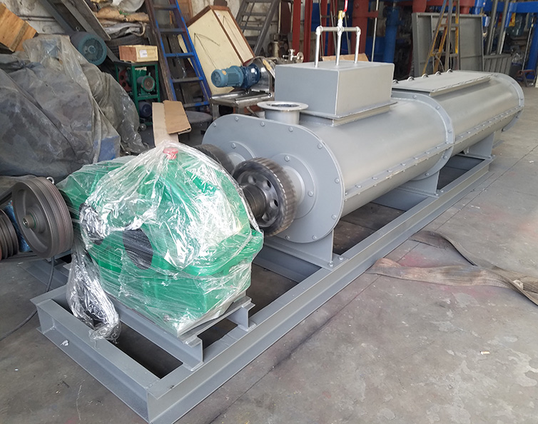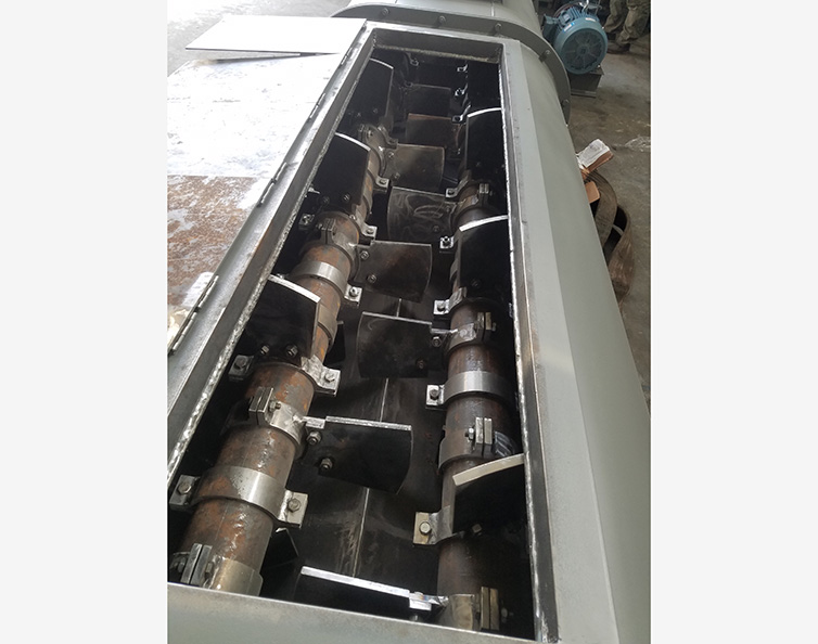 臥式雙軸混合機(jī)由臥式W形容器、帶(或者不帶)開口的頂蓋、安裝有槳葉并反向旋轉(zhuǎn)的雙軸、傳動單元、支撐架、密封件、出料結(jié)構(gòu)等部件組成。由于雙軸反向旋轉(zhuǎn),成一定角度的漿葉將物料沿軸向、徑向循環(huán)翻攪,使物料達(dá)到均勻混合的效果。物料在混合器內(nèi)的上拋運(yùn)動形成流動層,產(chǎn)生瞬間失重。從而達(dá)到剪切、混合的效果。
